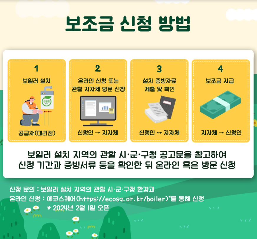 친환경 보일러 보조금은 온라인 사전 신청도 가능합니다. 다만, 사전 신청 1개월 이내에 보일러를 설치하지 않은 경우에는 보조금 재신청이 필요할 수 있습니다.