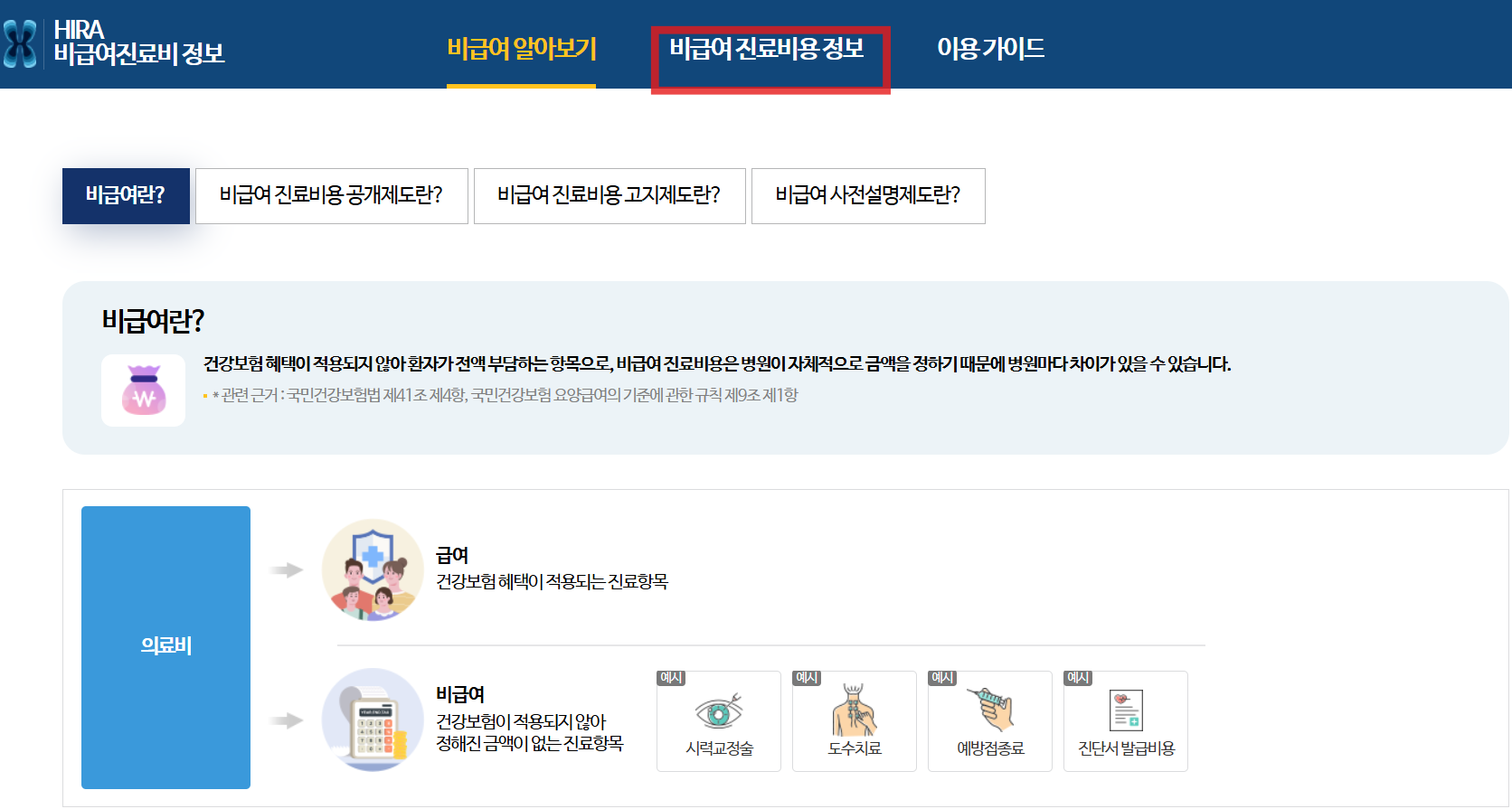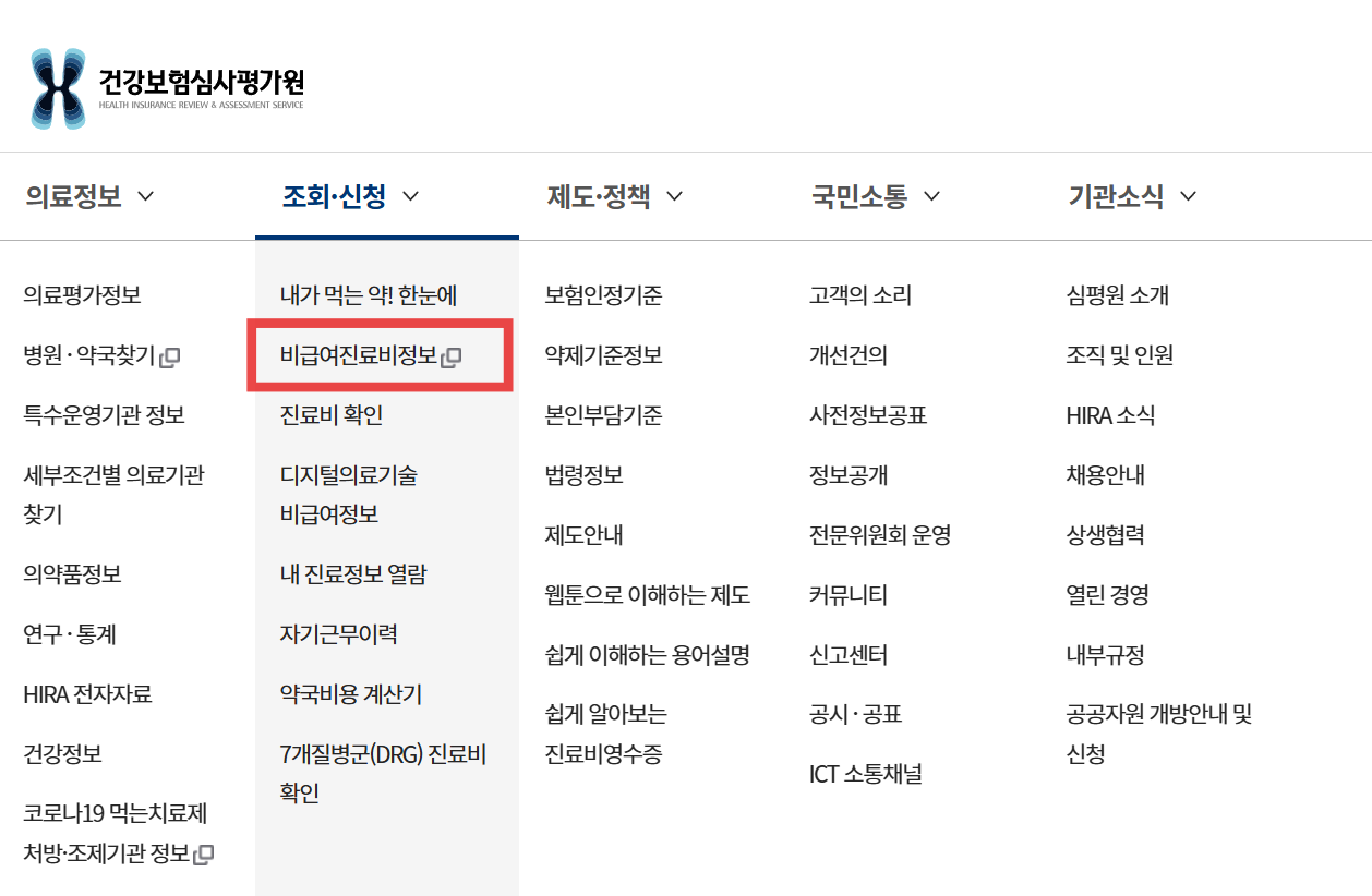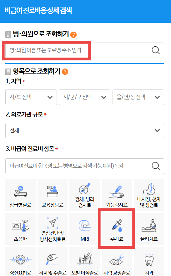 비급여진료비정보로 들어가셔서, 원하는 항목 입력 하면 바로 조회 가능합니다.