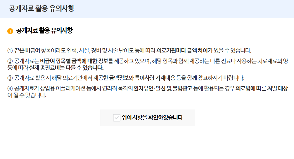 그러면 아래와 같이 특정 병원의 가격 정보를 볼 수 있습니다.