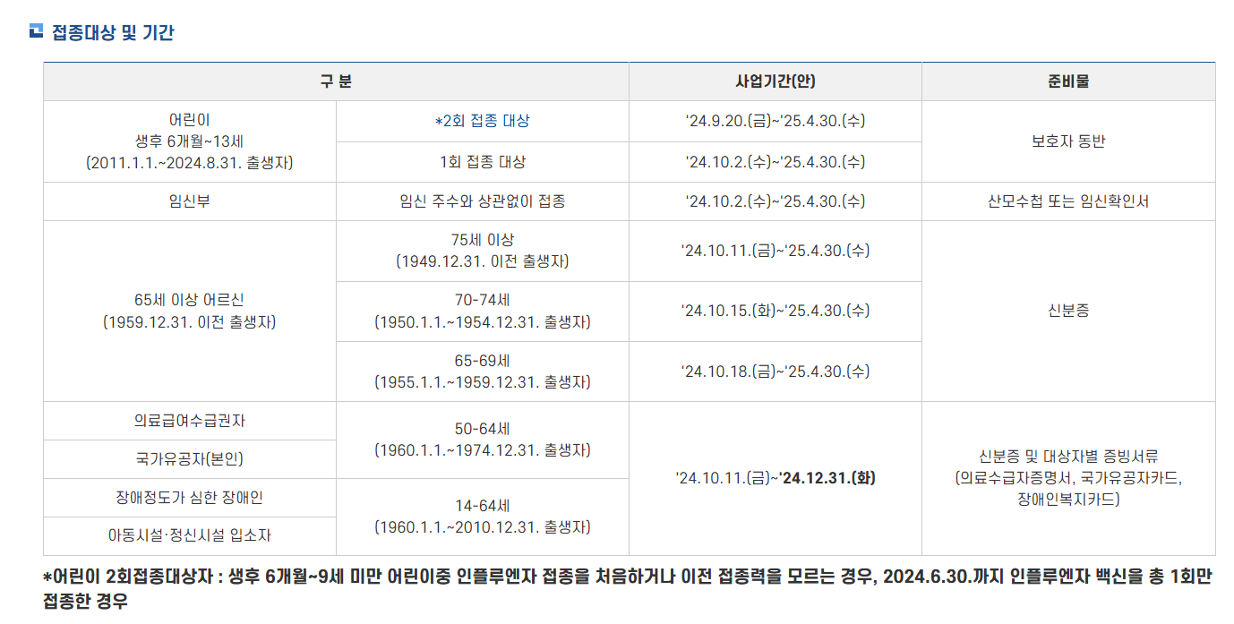 즉, 2024년 9월 20일부터 2025년 4월 30일까지 접종을 받을 수 있습니다.