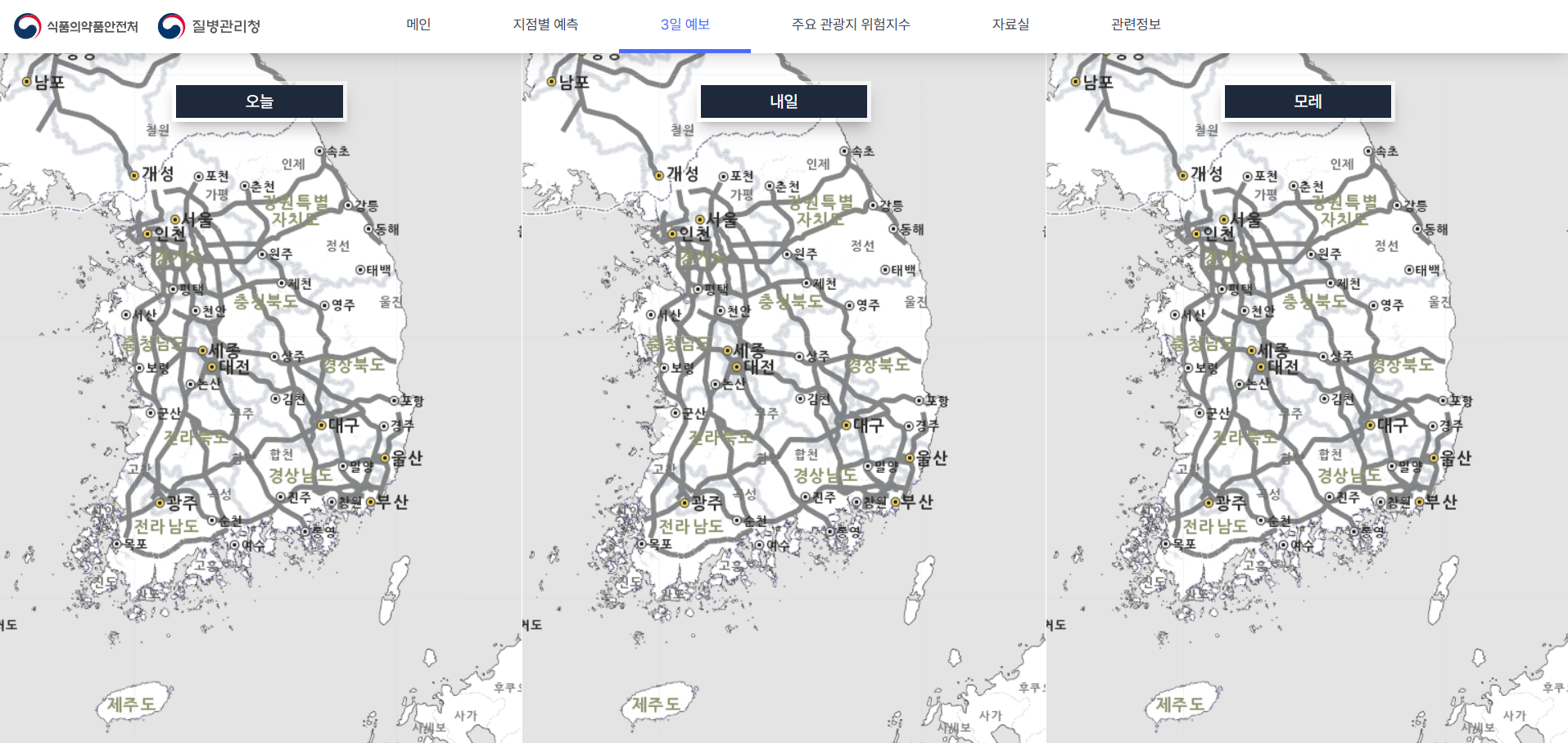 아래처럼 3일 간의 예보를 알 수도 있고요.