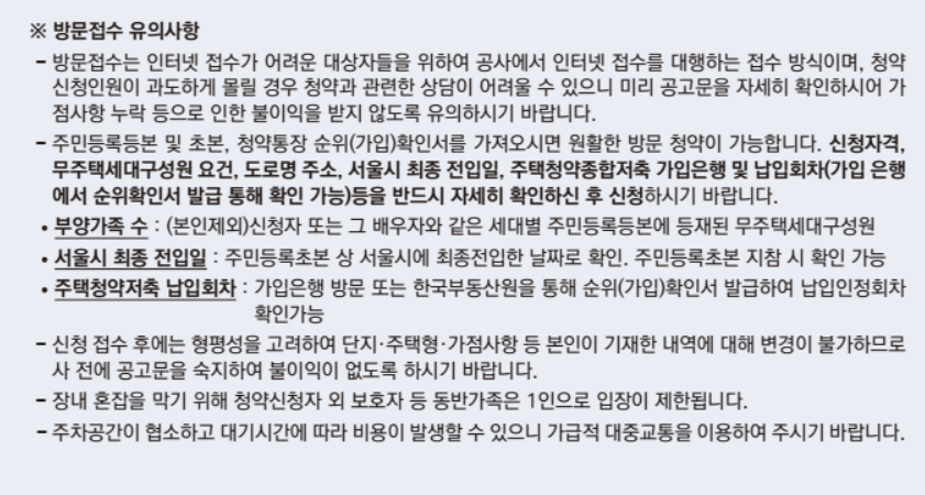 방문접수 장소 : 서울주택도시공사 2층 대강당 (서울시 강남구 개포로 621,3호선 대청역 8번 출구)