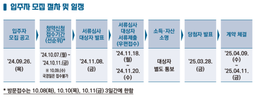 아래 이미지 통해 간략한 입주자 모집 절차 및 일정 확인해 보세요.